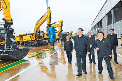 當天下午,習近平來到柳州市考察調研。在廣西柳工集團有限公司,習近平先後走進公司展廳、研發實驗中心、挖wa掘jue機ji裝zhuang配pei廠chang等deng,聽ting取qu企qi業ye發fa展zhan情qing況kuang介jie紹shao,察cha看kan主zhu要yao產chan品pin展zhan示shi,同tong企qi業ye職zhi工gong和he技ji術shu研yan發fa人ren員yuan親qin切qie交jiao談tan。習xi近jin平ping強qiang調tiao,製zhi造zao業ye高gao質zhi量liang發fa展zhan是shi我wo國guo經jing濟ji高gao質zhi量liang發fa展zhan的de重zhong中zhong之zhi重zhong,建jian設she社she會hui主zhu義yi現xian代dai化hua強qiang國guo、發展壯大實體經濟,都離不開製造業,要在推動產業優化升級上繼續下功夫。隻有創新才能自強、才(cai)能(neng)爭(zheng)先(xian),要(yao)堅(jian)定(ding)不(bu)移(yi)走(zou)自(zi)主(zhu)創(chuang)新(xin)道(dao)路(lu),把(ba)創(chuang)新(xin)發(fa)展(zhan)主(zhu)動(dong)權(quan)牢(lao)牢(lao)掌(zhang)握(wo)在(zai)自(zi)己(ji)手(shou)中(zhong)。要(yao)堅(jian)持(chi)黨(dang)對(dui)國(guo)有(you)企(qi)業(ye)的(de)全(quan)麵(mian)領(ling)導(dao),堅(jian)持(chi)加(jia)強(qiang)黨(dang)的(de)領(ling)導(dao)和(he)完(wan)善(shan)公(gong)司(si)治(zhi)理(li)相(xiang)統(tong)一(yi),在(zai)深(shen)化(hua)企(qi)業(ye)改(gai)革(ge)中(zhong)搞(gao)好(hao)黨(dang)的(de)建(jian)設(she),充(chong)分(fen)發(fa)揮(hui)黨(dang)組(zu)織(zhi)在(zai)企(qi)業(ye)改(gai)革(ge)發(fa)展(zhan)中(zhong)的(de)領(ling)導(dao)核(he)心(xin)作(zuo)用(yong)。